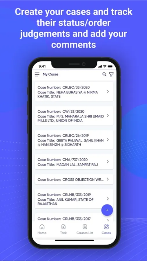 Cases : Any case can be added in the database and all the relevant data (as available on the High Court’s website) would be updated in the app pertaining to this case. Also, every document (petition, reply, applications, judgements etc) can be updated here for ready availability at all times and can be downloaded anytime (with internet connectivity). The app provides a push notification for any new order/judgement updated on the HC website as well. Case notes (summary of proceedings) too can be added here for ready reference at any time.