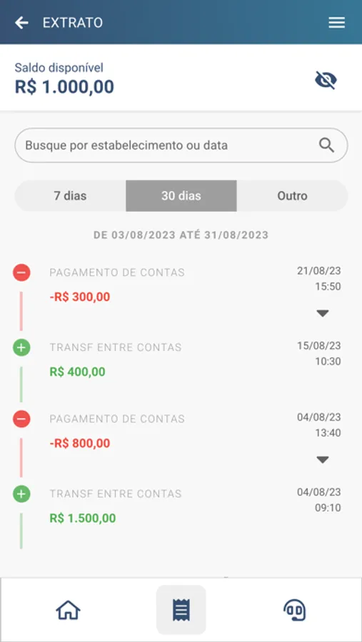 - Consulte o seu saldo e confira os seus lançamentos de maneira rápida e simples.