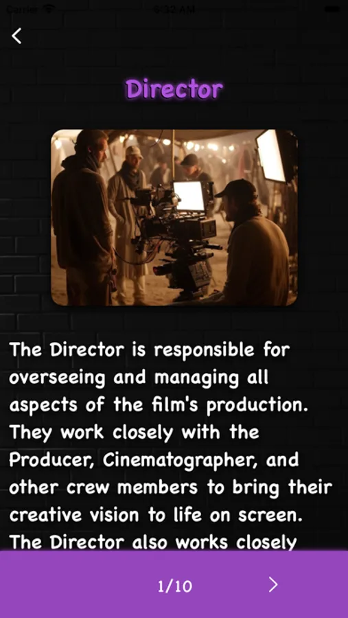 Learn how to write a compelling script, direct your actors, use the right equipment on set, and much more. Explore different genres of film and learn the techniques used by famous directors. After each lesson, test your knowledge with our quizzes and track your progress with our completion bar. Our Film School app has something for everyone who is passionate about the art of filmmaking. Stay tuned for new versions of our app, which will include even more lessons to help you perfect your craft and become a true film expert!
