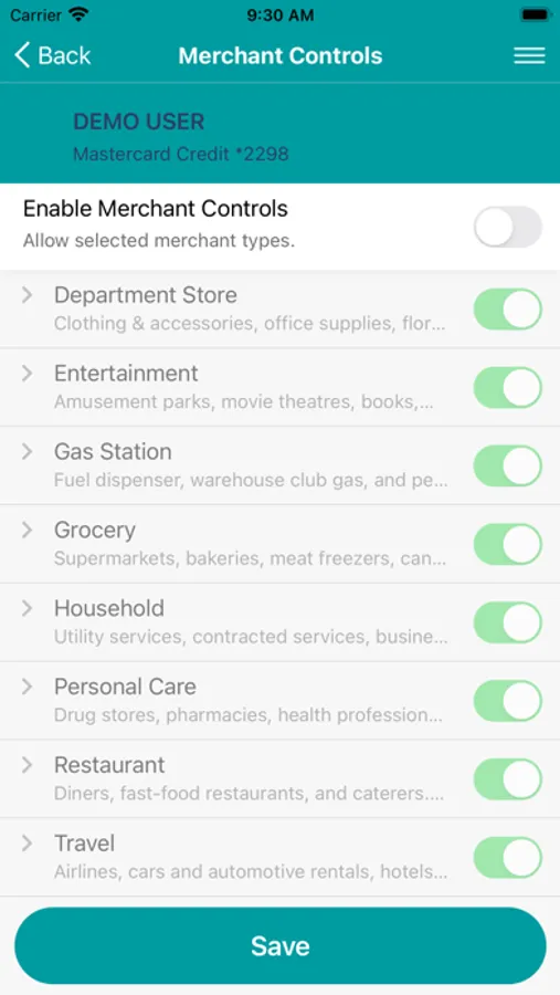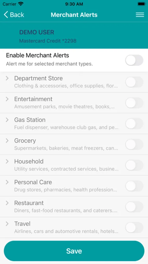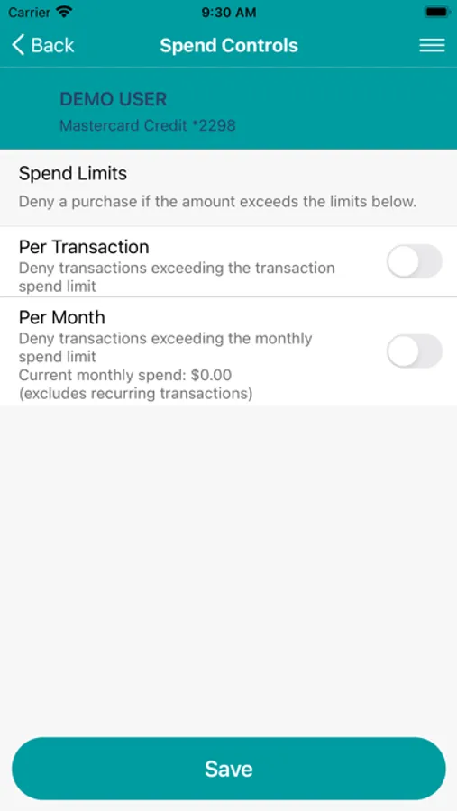 Toggle between “on” or “off” for those just-in-case moments when you are not sure if your card has been misplaced or stolen.