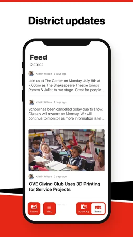 In the Live Feed is where you'll find updates from the administration about what's going on in the district right now. Whether that's celebrating a student's success, or reminding you about an upcoming deadline.
