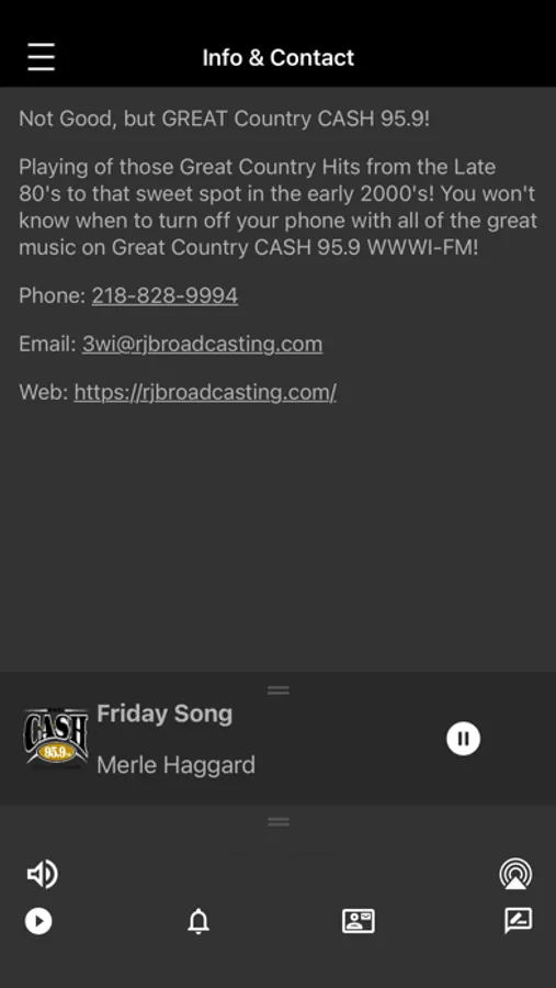 Playing of those Great Country Hits from the Late 80's to that sweet spot in the early 2000's! You won't know when to turn off your phone with all of the great music on Great Country CASH 95.9 WWWI-FM!