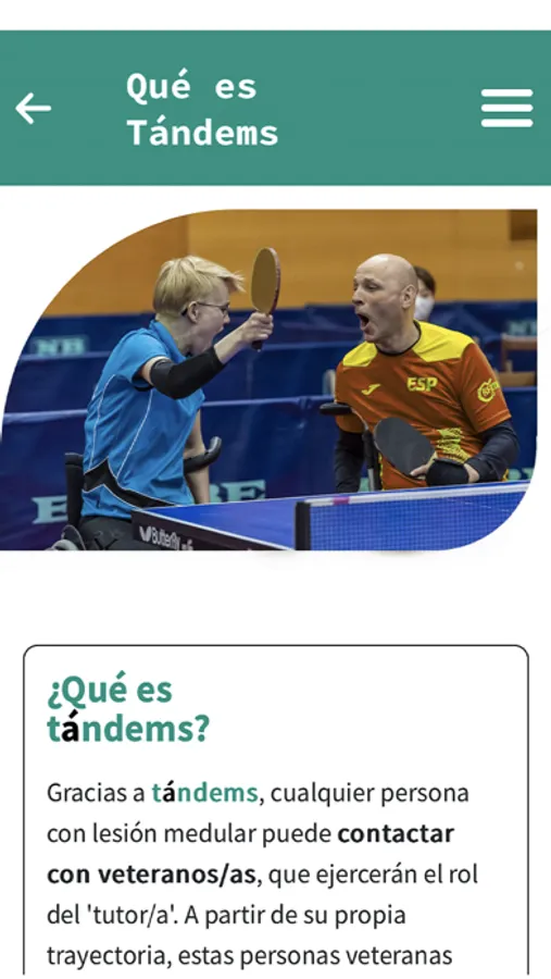 Con Tándems ASPAYM cualquier persona con lesión medular puede contactar con veteranos/as, que ejercerán el rol del 'tutor/a'. A partir de su propia trayectoria, estas personas veteranas compartirán sus vivencias sobre cómo adaptarse a la nueva situación y dibujar otra vez un proyecto de vida.