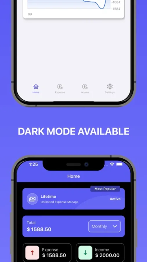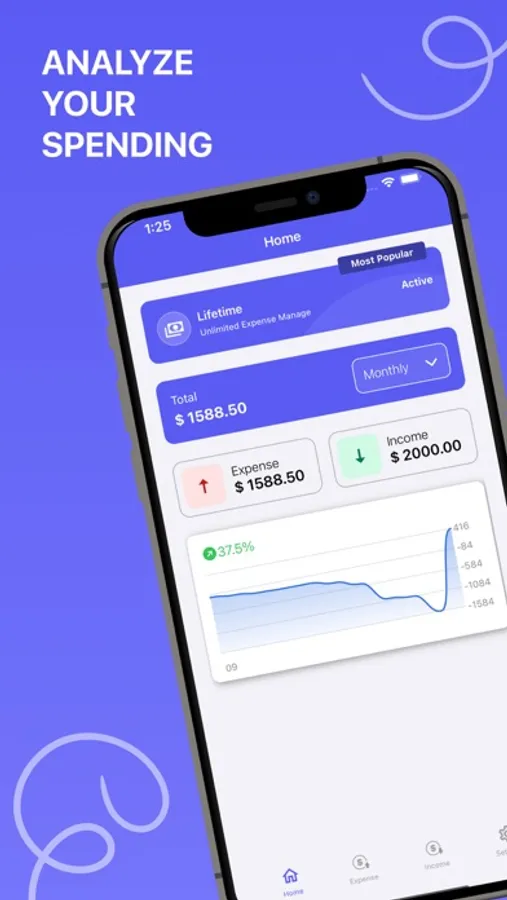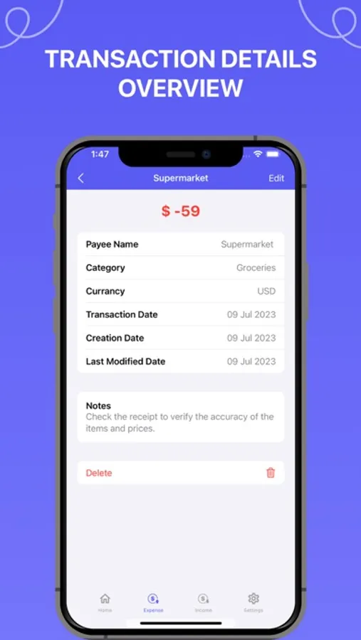 A Expense Manager lets you get complete control of your finances with a beautifully designed chart that shows the overview of all the income and spending of the selected time.