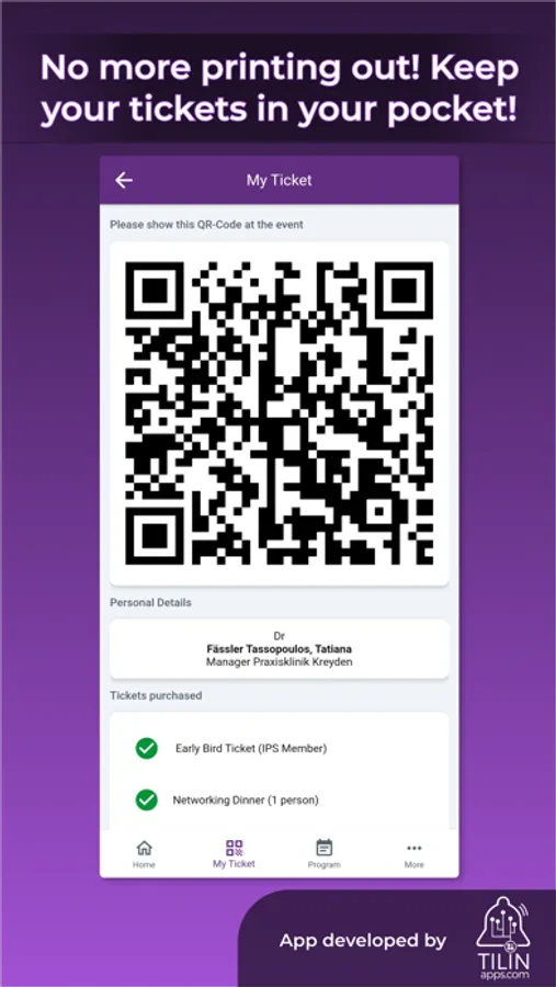 - After registration your conference ticket is stored as a QR code, and an offer for accommodation during the conference is included.