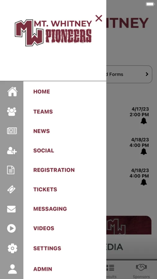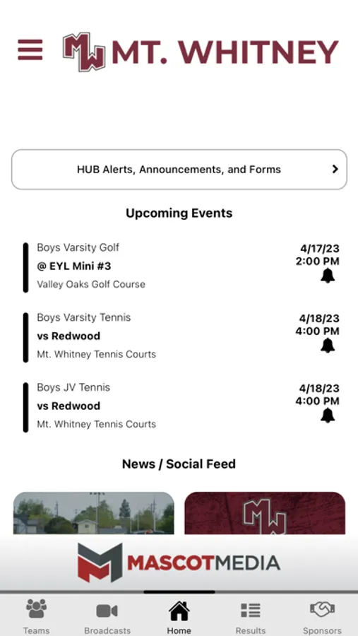 -Supporters: Special Thanks to local boosters and supporters of Mt. Whitney Pioneer Athletics with a directory including website and in-app calling.