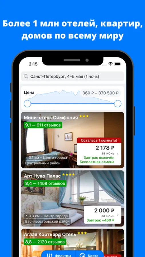 - Больше миллиона номеров в отелях, санаториях и апартаментах России и мира