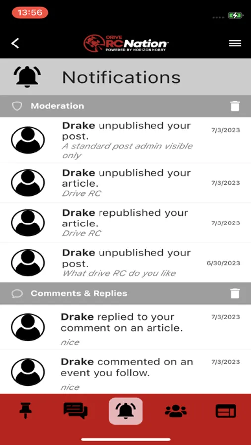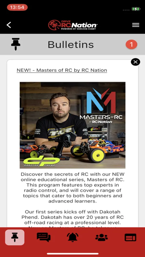 The Drive RC Nation app keeps you connected with the racing community. Fully integrated with the drive.RCNation.com website, our native app lets you know when your buddies are racing, when someone sends you an instant message and when you receive notifications, comments or replies to your posts. Install the app and pop the icon on your home screen because we all know what is really important in your life. Log on. Drive off!