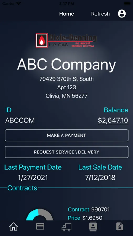 Information at your fingertips! This app gives you direct access to your account balance, location and contract information. It also gives you the ability to store and process payment and request service work and deliveries directly through the app.
