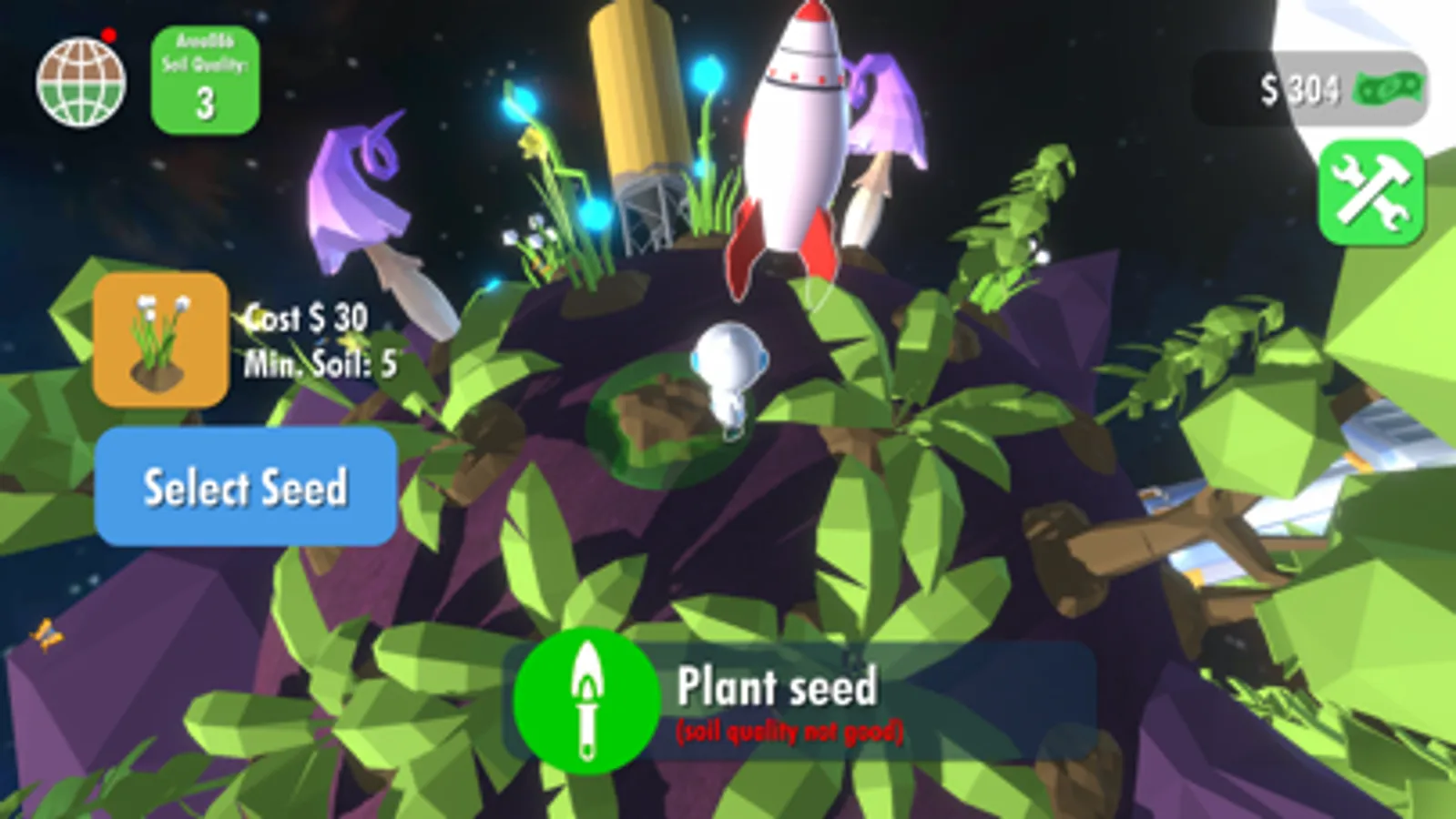 Easy gameplay, drag and move freely on the planet surfaces. Tap the action buttons to perform the tasks, such as preparing the soil and planting the seeds. Harvest your crops and gain coins to install new varied structures, until to support life.