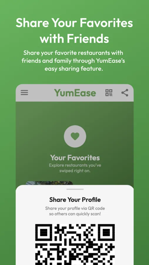Once you find a restaurant that catches your eye, you can save it to your "favorites" list, share it with friends, or order through preferred partners with the app. With YumEase, discovering new places to eat has never been easier.