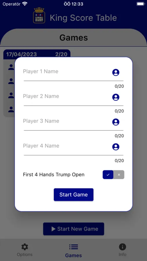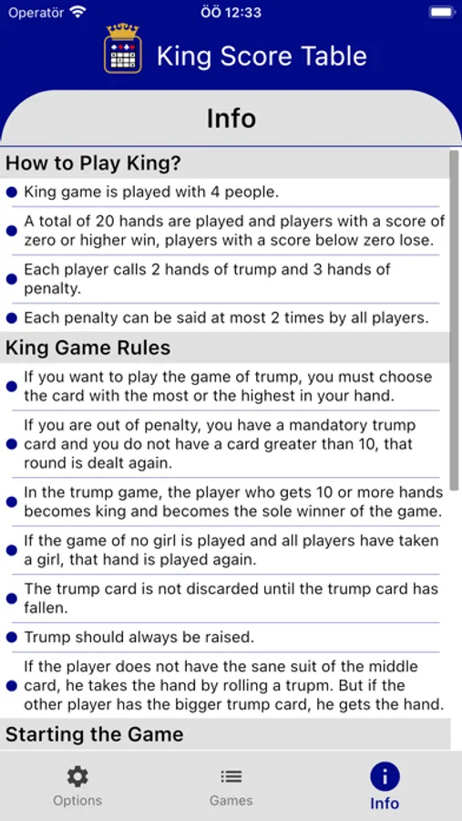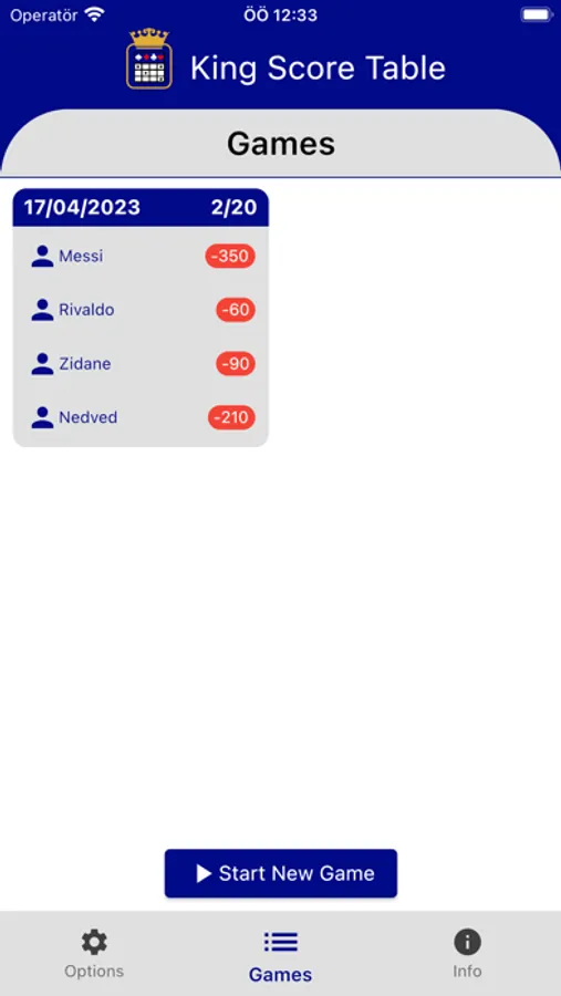 King Score Table is an application that allows you to keep the scores of your King games and do your calculations for you.