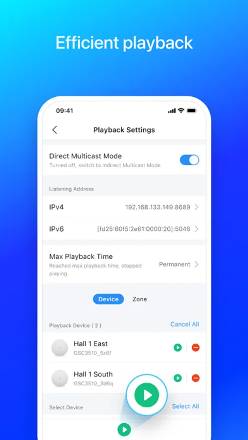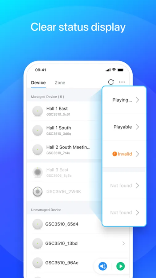 GSC Assistant is a mobile client that works with the GSC series from Grandstream. It supports fast management and playback of GSC3516/3506/3510/3505 products on your mobile device. It also features fast management of GSCs in the same LAN, quick positioning, convenient playback of single GSC, custom partitioning of multiple GSCs, and unified playback for multiple zones. It also supports IPv4 and IPv6, and is compatible with complex network environments. GSC Assistant enables users to manage their GSCs’ playback more conveniently and quickly, allows GSCs to better integrate into the users' work and life.