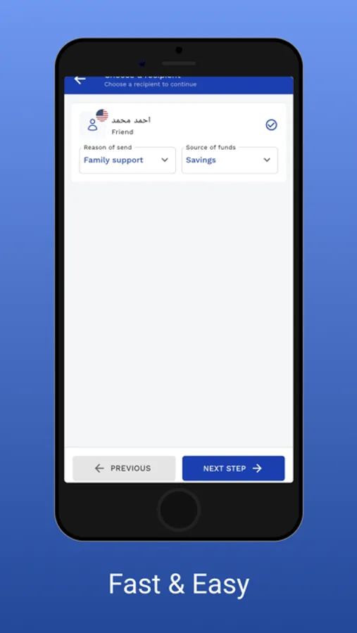 Enjoy the easy process to send your money to family and friend from your phone,