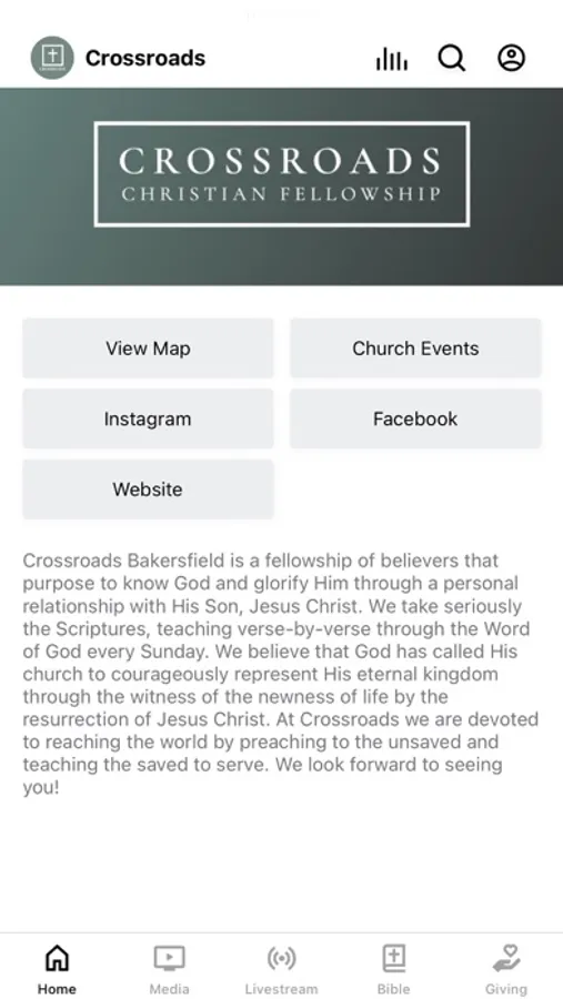This app will help you stay connected with the day-to-day life of Crossroads Bakersfield. With this app you can: watch or listen to past messages; stay up to date with push notifications; share your favorite messages via Facebook, or email; and download messages for offline listening.