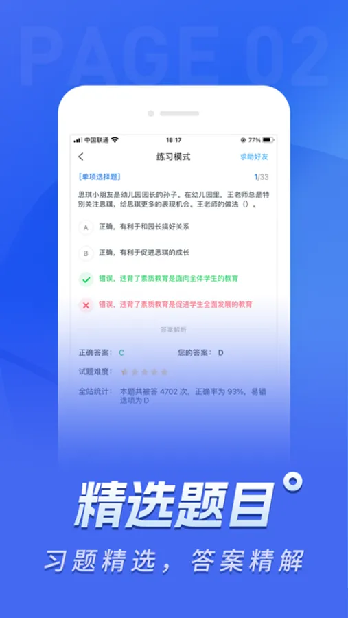 一款专为备考教师资格证、教师招聘的考生而研发的教师考试复习备考App!精心收录教师资格证考试笔试+面试、教师招聘考试笔试+面试试题,包含每日一练、考点练习、历年真题、模拟试题四大模块,助力考生充分利用碎片时间移动式学习,效率备考教资!教师资格证考试:笔试涵盖幼儿、小学、初中、高中综合素质+保教/教育/教育知识与能力+专业课,面试涵盖结构化+试讲+答辩。教师招聘考试:笔试涵盖多省市教育综合知识+公共基础知识+专业课,面试涵盖说课+试讲。每日一练:基于个性化分析、大数据运算,智能组卷,每日随机刷题,测试教资知识水平。考点练习:细致讲解幼儿、小学、初中、高中教资考试重难点,随题练习、观看。历年真题:历年试题,优质解析。多种做题模式,想怎么练就怎么练,知识点掌握快。模拟试题:模拟真实考试场景,即时查缺补漏,厚积薄发。