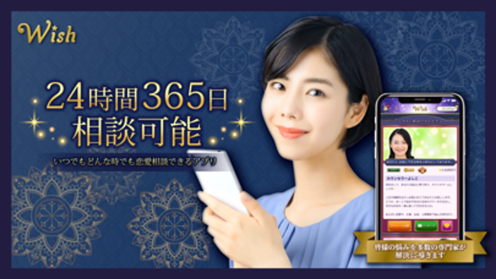 Wishは、恋愛の悩みに特化したメッセージ相談アプリです。