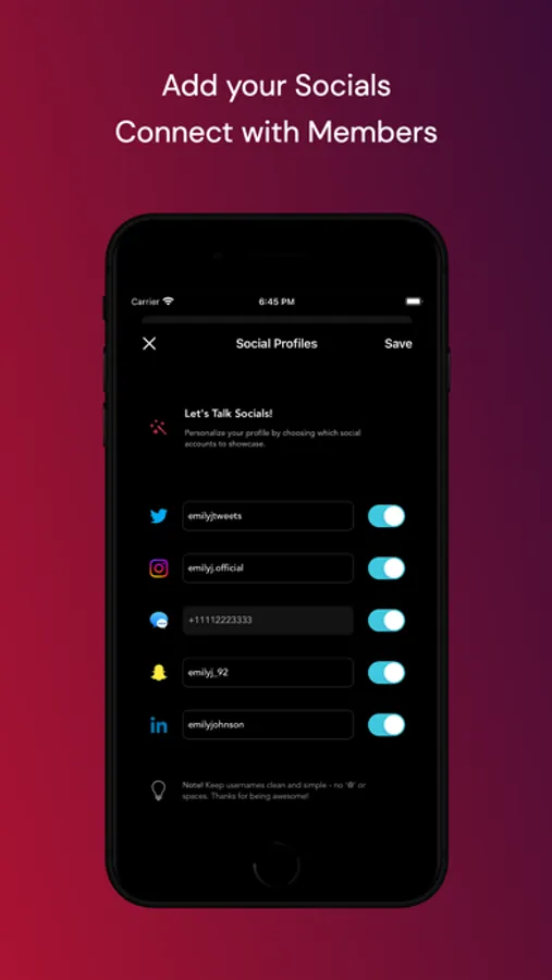 • Palacio empowers you to personalize your profile and fully express yourself by featuring your favorite social media accounts.