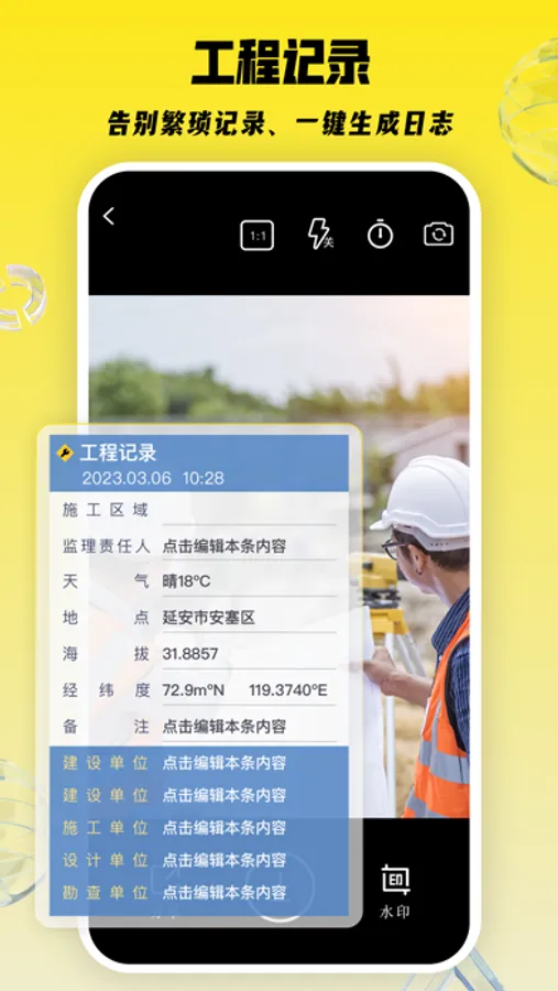 在手机上就能一键轻松制作各种工作日志和施工汇报,只需上传几张照片就能自动生成报告,并且支持一键云端存储,分享好友。