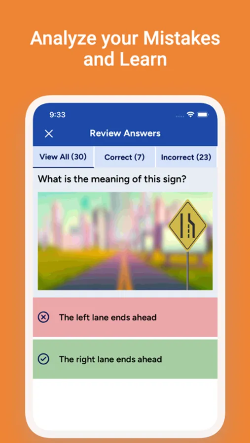 You will get the test result based on the official criteria to pass the Driver’s License Test. You will also be able to find out what questions you've done wrong after taking the test.
