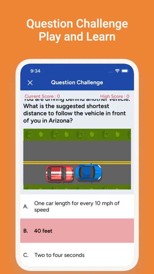 This is a unique feature of our application. It allows you learn while playing a challenge game. Your score will go up by one point each time you correctly answer a question up until the point where you get it wrong. It keeps record of your high score.