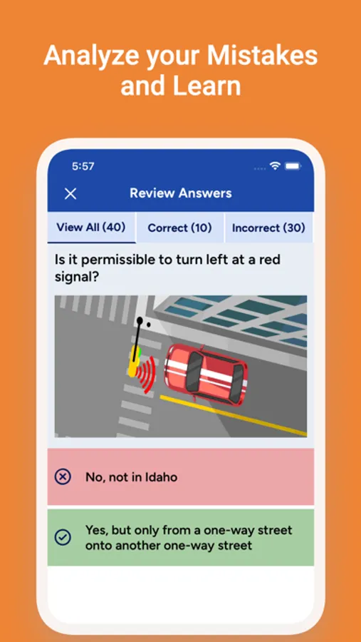 You will get the test result based on the official criteria to pass the Driver’s License Test. You will also be able to find out what questions you've done wrong after taking the test.