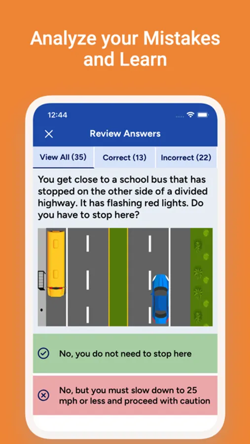 You will get the test result based on the official criteria to pass the Driver’s License Test. You will also be able to find out what questions you've done wrong after taking the test.