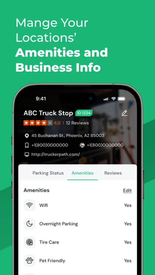 - Manage your locations’ amenities and business info in the Trucker Path app