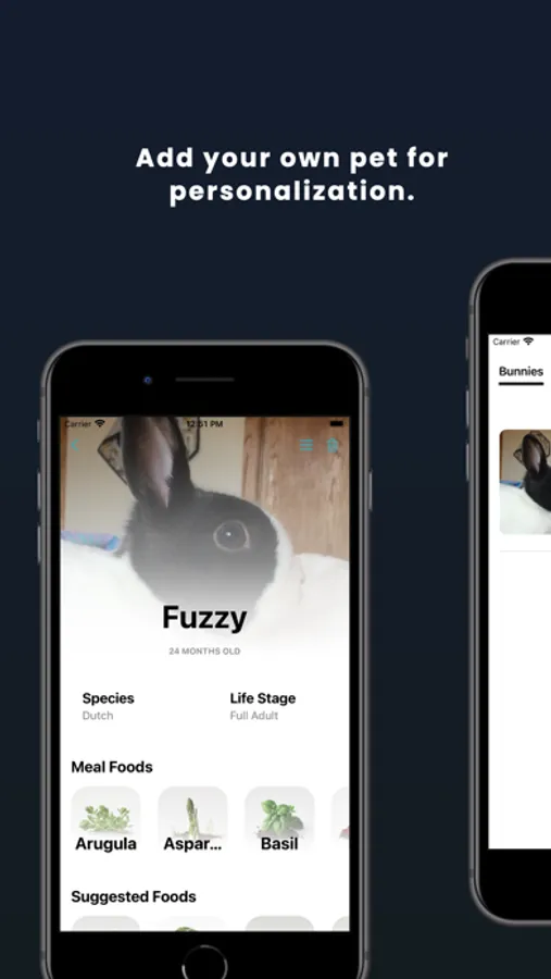 • Add your bunnies into the app to track their age, and view suggested foods.