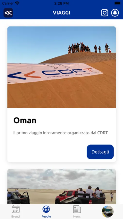 People CDRT rappresenta un luogo d'incontro unico, una nuova dimensione per vivere appieno l'esperienza del Consorzio CDRT. È un luogo dove è possibile incontrare gli amici di sempre e fare nuove conoscenze, condividere passioni e creare ricordi indimenticabili. Essere parte della "gente del CDRT" significa abbracciare uno spirito aperto alle novità, essere curiosi e partecipi, sempre alla ricerca di un sano divertimento.