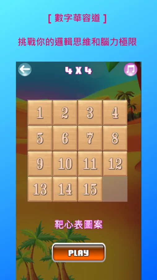 遊戲開始後隨機打亂數字順序,手指點擊滑動螢幕,將滑塊移動回正確的位置。遊戲的目的是用少的步數,短的時間將棋盤上的數字方塊,按照從左到右,從上到下的順序重新排列整齊。當你把螢幕上的數字方塊按照順序排列整齊時,你就過關了!