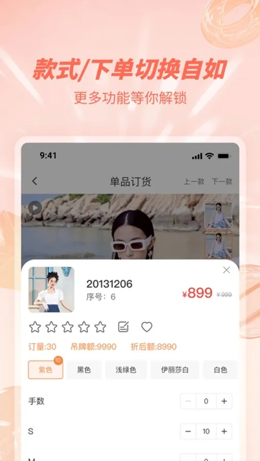 1.具有单品/分类/系列/搭配/陈列/直播/全景推演等多种订货模式。