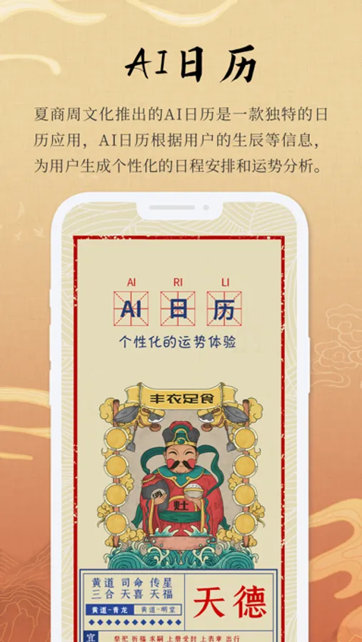 夏商周文化推出的AI日历是一款独特的日历应用,专门为每一个用户进行深度定制。与传统的日历应用不同,AI日历的内容完全根据个人的生辰进行推断,为用户提供个性化的日程安排和运势分析。同时,AI日历还支持绑定多人,方便用户查看多人的日程和运势,为家庭、团队或者朋友间的合作提供便利。