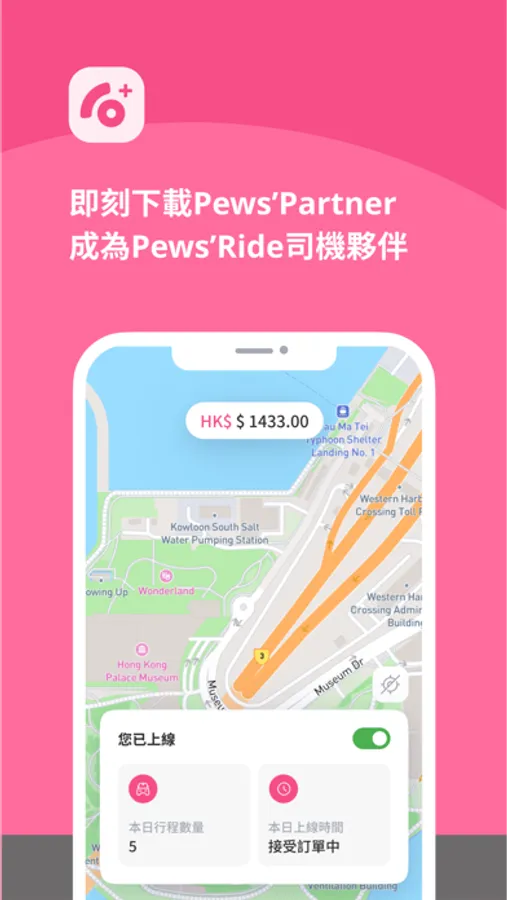 下載Pews’Partner司機版,簡單幾步註冊審批,一個App即可以輕鬆接取訂單!