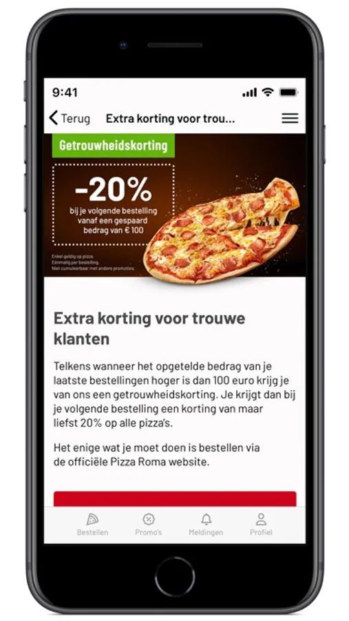 Je krijgt bij het bestellen via de app bovendien altijd een extra korting.