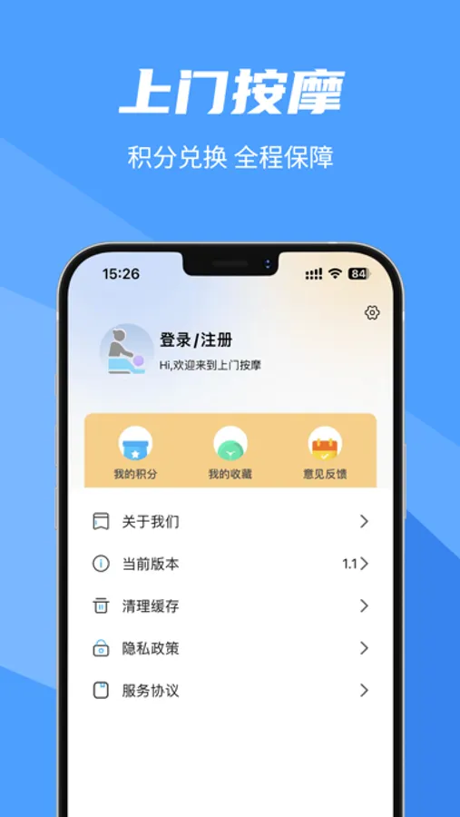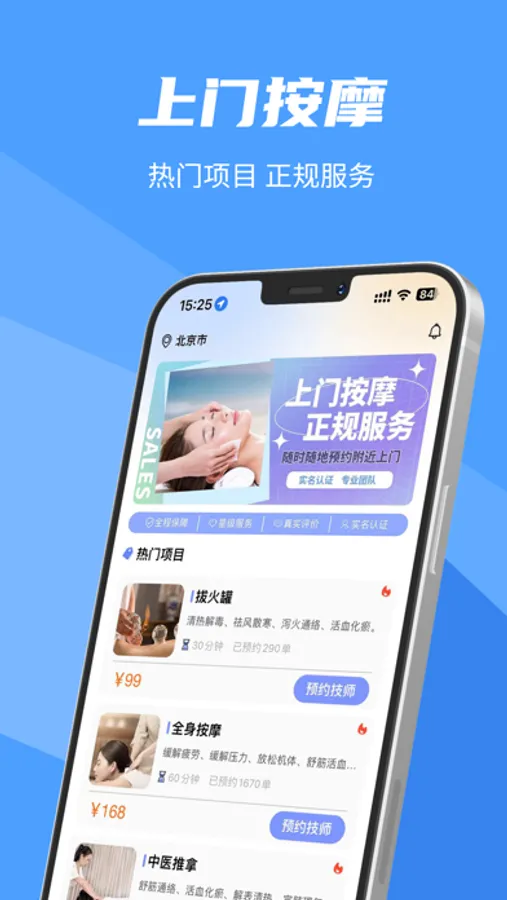我们是一款预约上门按摩的app,方便更多用户进行按摩预约服务。