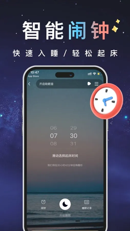 ·智能闹钟,帮助您在较轻的睡眠醒来,让你醒来时清爽温柔。