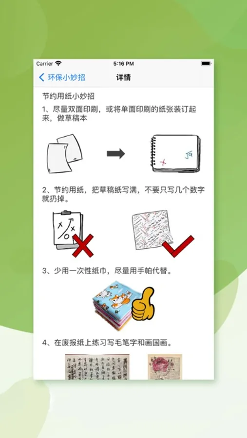纸与我们的生活密切相关,更与环保紧密相连。从自己做起,从身边做起,节约每一张纸,珍惜和保护生态环境。我们可以通过制定自己每日节约用纸计划,回收可以重复利用的纸张,合理处置不可回的收纸。