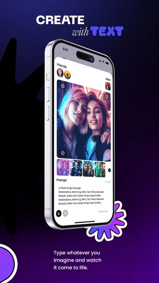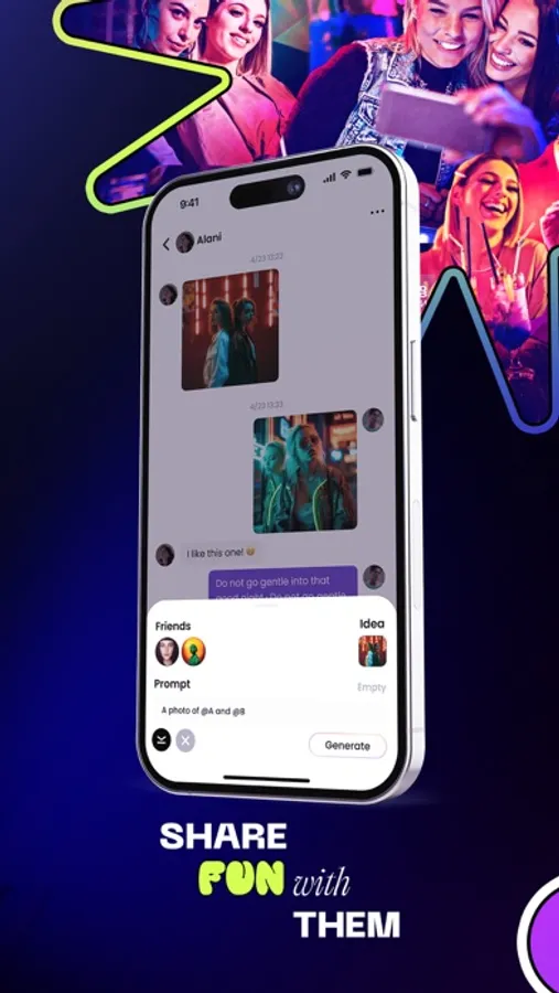 It only gets better with friends. By inviting friends to the app, you can create images with them as well, put them next to you for the perfect selfie or put them into questionable memes, all while chatting with them. This unlocks more ways to talk with friends than ever before.