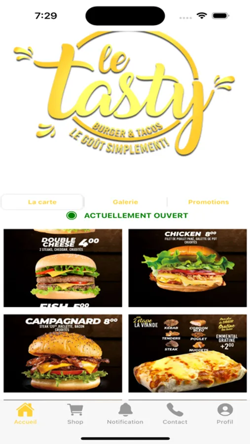 Explorez notre sélection diversifiée de burgers gourmands et de tacos savoureux, élaborés avec des ingrédients de qualité et une dévotion pour les saveurs traditionnelles. L'application LE TASTY Bernis facilite la commande en ligne et vous assure une expérience culinaire agréable et pratique.