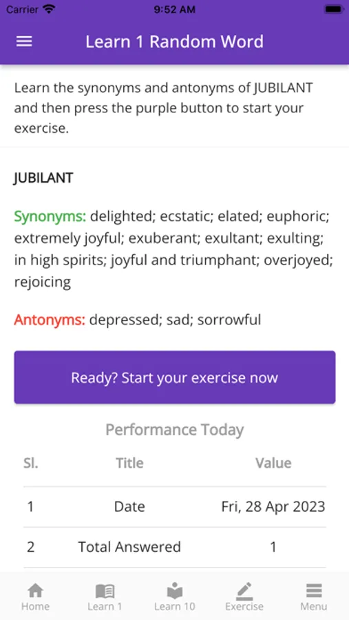 You can learn 707 words and answer 7,734 exercise questions using this app.