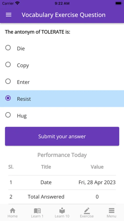 This is an English vocabulary word learning and practice test app for the Class 9 & 10 exam.