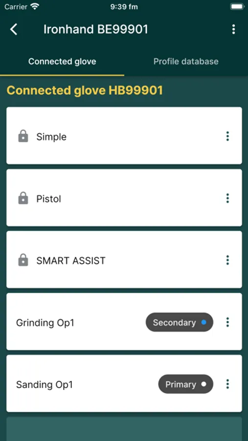 In the app, you can customize the gloves according to the user's needs and keep track of your Ironhand systems.