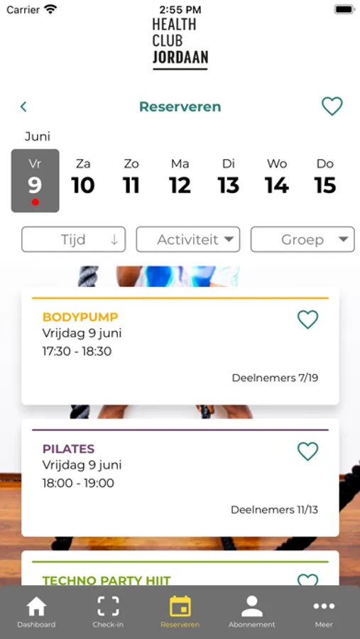 - Het boeken van groepslessen. Je kunt snel een les reserveren, annuleren en makkelijk het overzicht van de reeds gereserveerde lessen inzien.