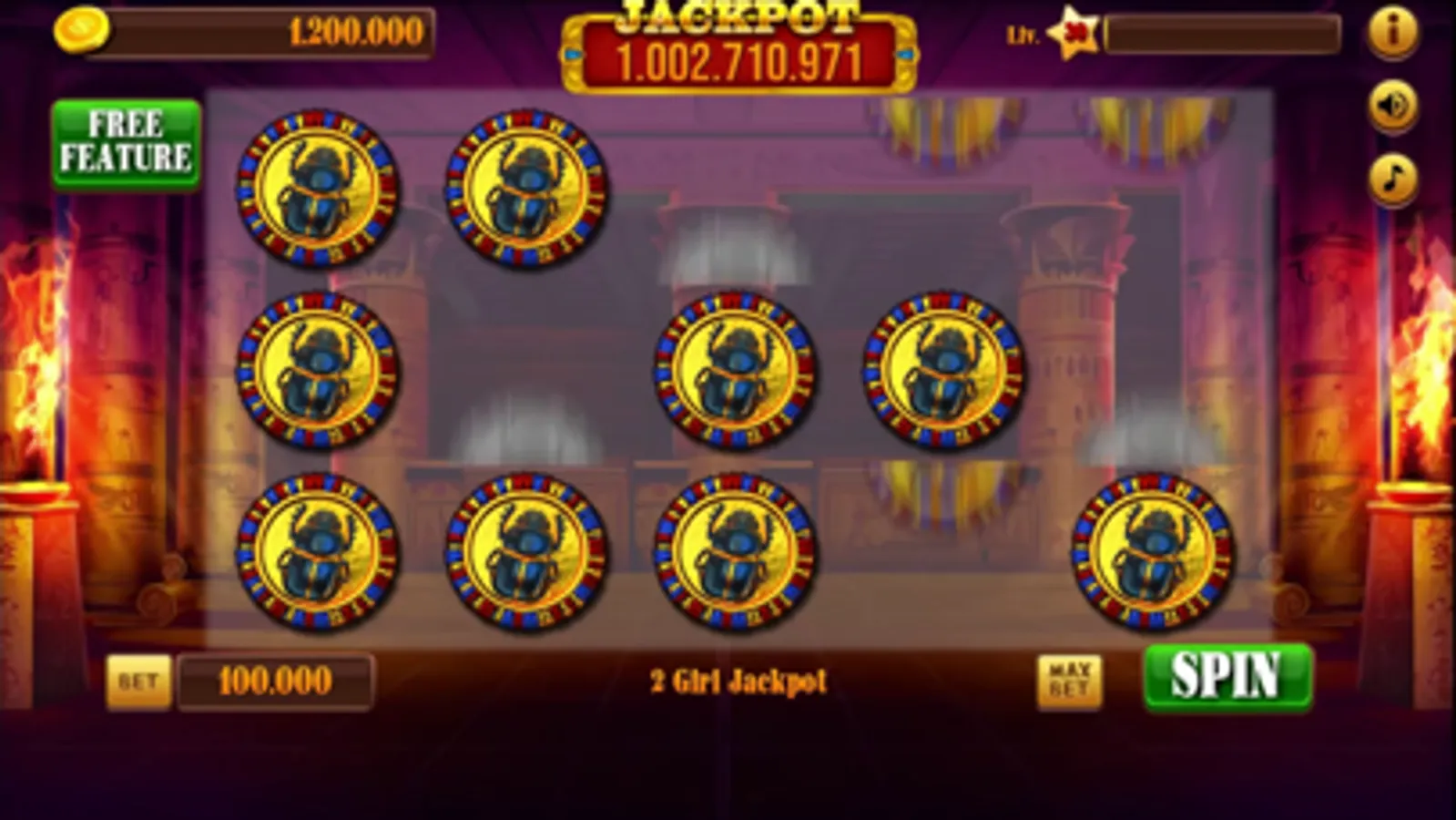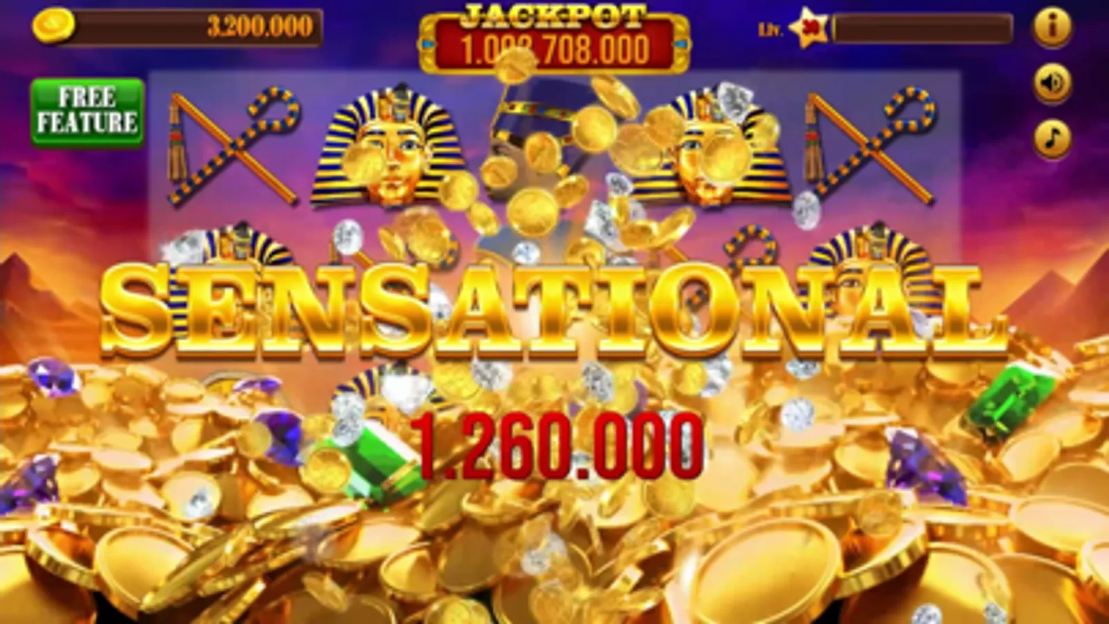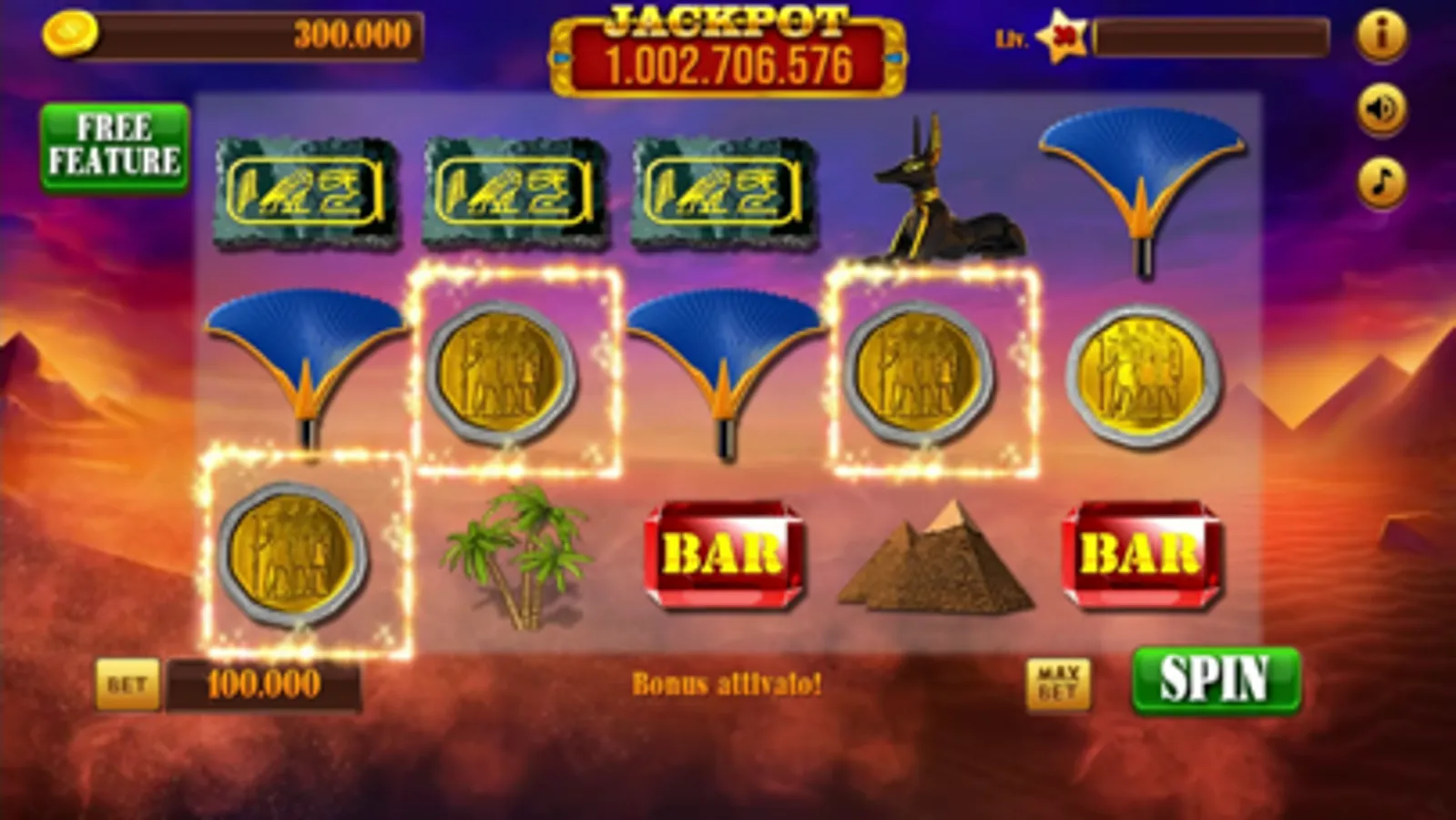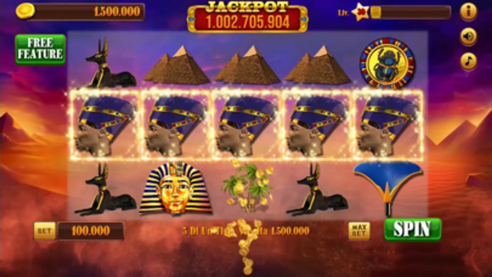 Slot machine ambientata nell'antico Egitto con bonus Sphinx e Jackpot progressivo.