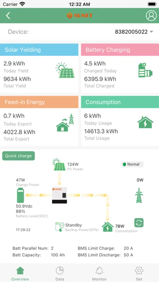 monitoring and control your inverter device. Show device runtime data. Check the running status of device online.