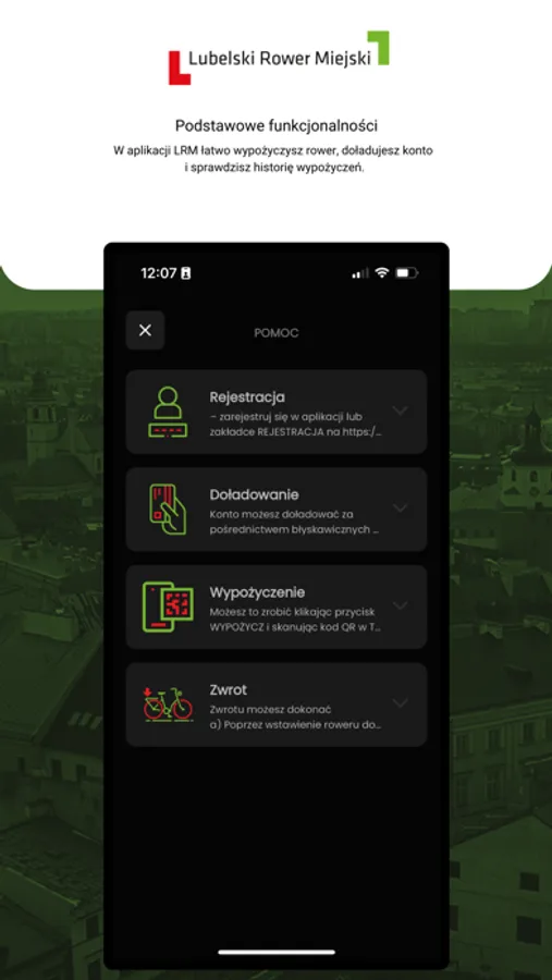 Pobierz ją ze Sklepu i zarejestruj się, doładuj konto, wypożyczaj rowery i lokalizuj stacje.