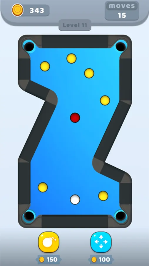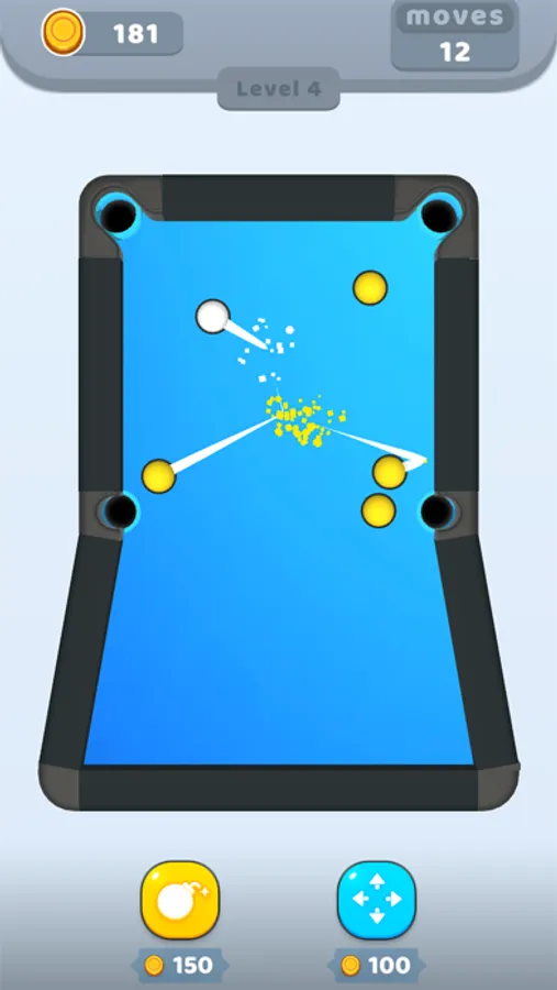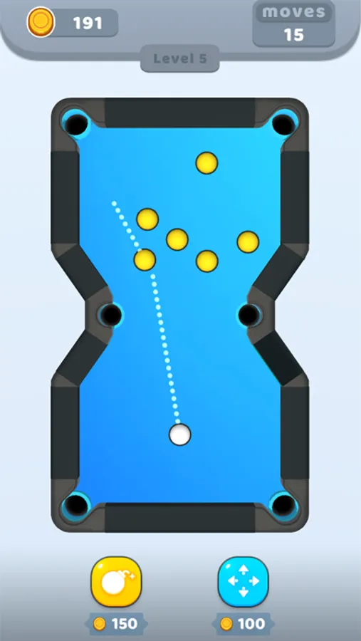 Enjoy the great physics of pool with a satisfying bubble-shooter-like controller. See other players average number of move to finish each level, will you make this number go up or down? Every level is different with a new challenge every time. Two boosters included: move your white ball whenever you want, if you earned enough money to do so. Or replace your white ball with a bomb to shoot a ball that annoys you. Enjoy!