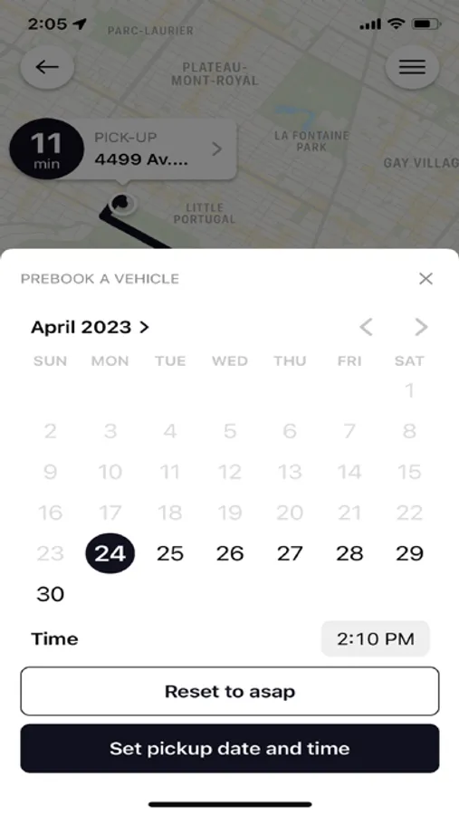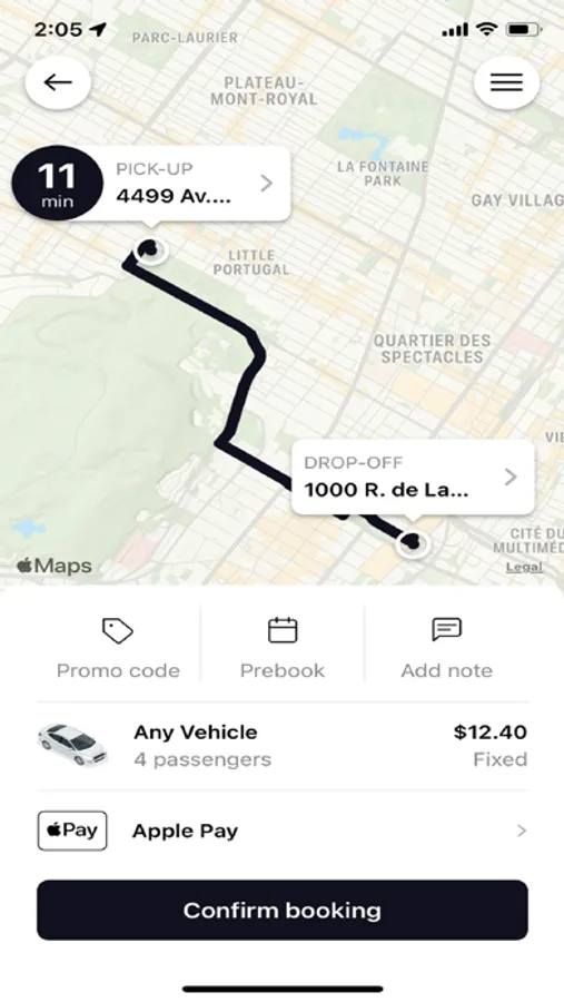 Lors de la réservation, vous recevrez immédiatement une confirmation, ainsi qu'une mise à jour lorsque votre véhicule a été attribué. De là, vous pouvez surveiller la progression de votre véhicule lorsqu'il se dirige vers votre lieu de prise en charge.