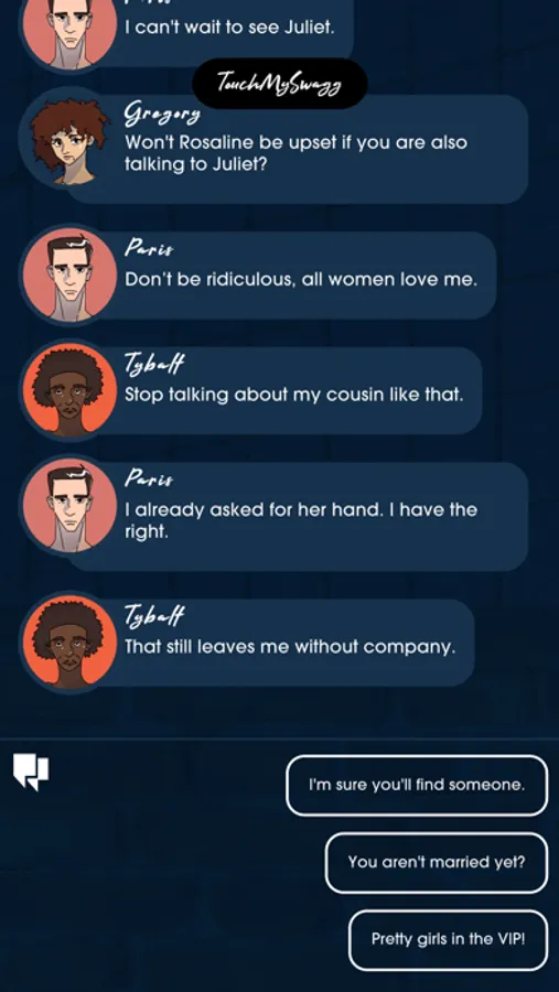 During key moments of the play, you’ll be invited to interact with the town group chat as a citizen of Verona. At intermission, we challenge you to pen your own sonnet!